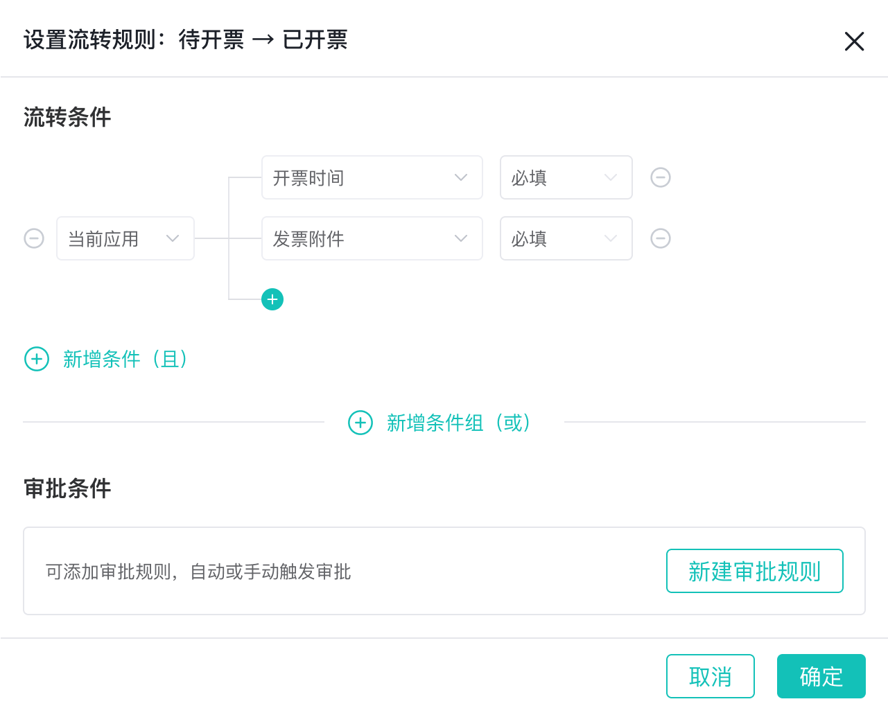 支持添加审批规则作为流转条件