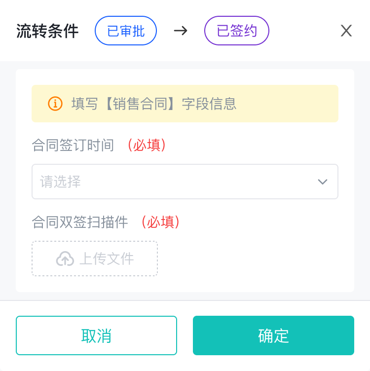 支持将关联表单任意字段设为流转条件